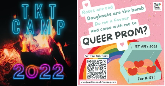 The Kite Trust 13-18s Camp 2022 - From 11th-14th August, we’re hosting a camp for LGBTQ+ young people aged 13 to 18. It’s open to all young people in this age group who identify as LGBTQ+. It’s free to those who have a Holiday Activity and Food Voucher code which they can redeem with us, and we charge on a ‘pay as you can afford’ basis for all other families. There will be a programme of activities and crafts, as well as all the fun of four days camping in the woods, with a focus on building community, making friends and taking time to relax! You can find more details about the camp and a form for young people to express an interest in attending here.